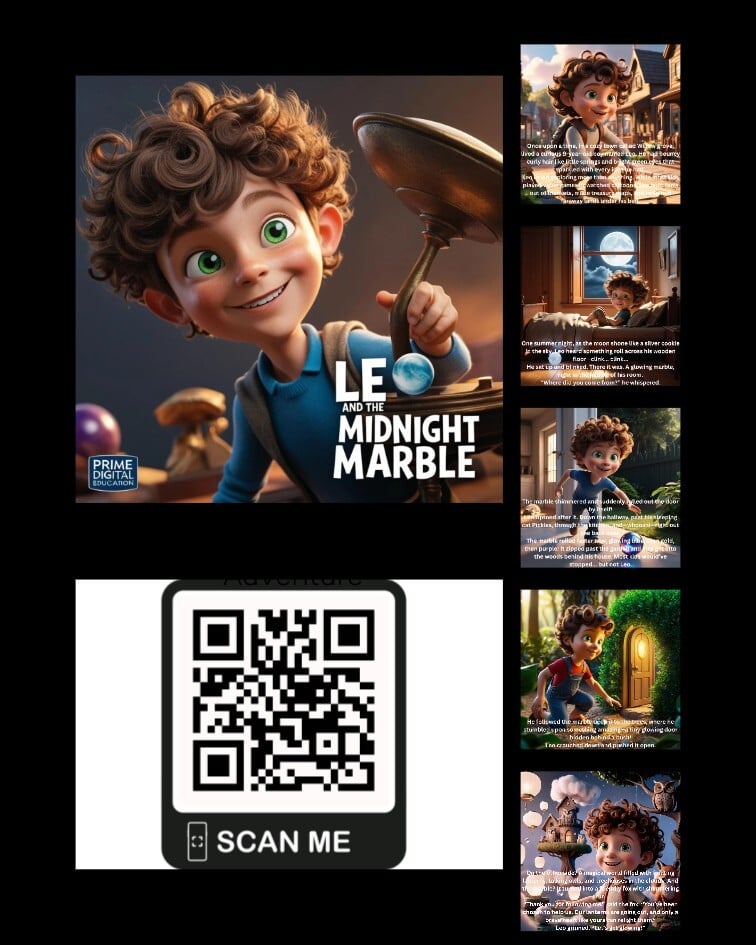 "Leo and the Midnight Marble" is a magical children's story about a curious 9-year-old boy with curly hair and green eyes who discovers a glowing marble that leads him on an unforgettable nighttime adventure. Perfect for kids who love fantasy stories, bedtime adventures, and imaginative tales, this heartwarming journey encourages bravery, wonder, and the magic of curiosity.